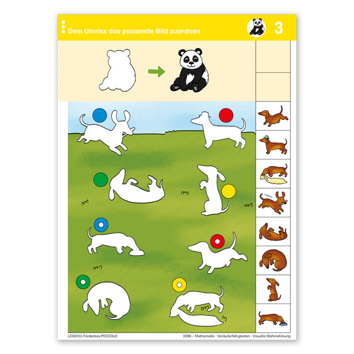 Ohne schriftliche Anweisungen und mit starker bildlicher Unterstützung führt die Box in einem Einführungskapitel zunächst an das Arbeiten mit LOGICO heran. So ist es möglich, dass die Kinder eigenständig mit dem Material arbeiten können. Kleinschrittig führt die Box anschließend kapitelweise durch folgende Kompetenzbereiche: