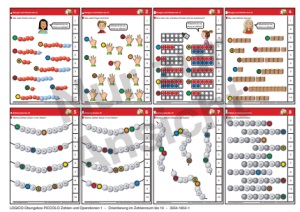 LOGICO-Übungsbox PICCOLO Zahlen und Operationen 1 • Orientierung im Zahlenraum bis 10 • 3354-1854-1 1 2 3 4 5 6 7 8 9 10 Wie viele Perlen sind es? Erkennst du es, ohne zu zählen? LOGICO-Übungsbox PICCOLO 3354 – Zahlen und Operationen 1 · Orientierung im Zahlenraum bis 10 1 Mengen und Zahlen bis 10 1 2 3 4 5 6 7 8 9 10 Welche Zahlen fehlen in der Reihe? 2 3 4 5 7 8 9 10 1 2 4 6 7 9 10 1 2 3 5 6 7 8 10 1 3 4 5 6 8 9 LOGICO-Übungsbox PICCOLO 3354 – Zahlen und Operationen 1 · Orientierung im Zahlenraum bis 10 5 Zahlenreihe bis 10 1 2 3 4 5 6 7 8 9 10 Wie viele Würfel sind es? Erkennst du es, ohne zu zählen? LOGICO-Übungsbox PICCOLO 3354 – Zahlen und Operationen 1 · Orientierung im Zahlenraum bis 10 4 Mengen und Zahlen bis 10 2 3 4 5 6 7 8 9 10 11 Zähle in Zweierschritten. 3 5 7 4 6 8 2 4 7 5 1 1 3 5 8 6 4 2 4 6 5 7 9 11 9 7 10 8 6 LOGICO-Übungsbox PICCOLO 3354 – Zahlen und Operationen 1 · Orientierung im Zahlenraum bis 10 8 Zählen in Zweierschritten 1 2 3 4 5 6 7 8 9 10 0 Wie viele rote und blaue Punkte sind es zusammen? Erkennst du es, ohne zu zählen? LOGICO-Übungsbox PICCOLO 3354 – Zahlen und Operationen 1 · Orientierung im Zahlenraum bis 10 3 Mengen und Zahlen bis 10 1 2 3 4 5 6 7 8 9 10 Welche Zahlen fehlen in der Reihe? 1 2 3 4 9 10 4 5 6 7 8 10 6 5 1 7 2 1 LOGICO-Übungsbox PICCOLO 3354 – Zahlen und Operationen 1 · Orientierung im Zahlenraum bis 10 7 Zahlenreihe bis 10 1 2 3 4 5 6 7 8 9 10 Wie viele Finger sind das? Erkennst du es, ohne zu zählen? LOGICO-Übungsbox PICCOLO 3354 – Zahlen und Operationen 1 · Orientierung im Zahlenraum bis 10 2 Mengen und Zahlen bis 10 1 2 3 4 5 6 7 8 9 10 Welche Zahlen fehlen in der Reihe? 1 2 7 8 9 10 3 4 9 10 1 2 3 4 5 6 5 6 7 8 LOGICO-Übungsbox PICCOLO 3354 – Zahlen und Operationen 1 · Orientierung im Zahlenraum bis 10 6 Zahlenreihe bis 10